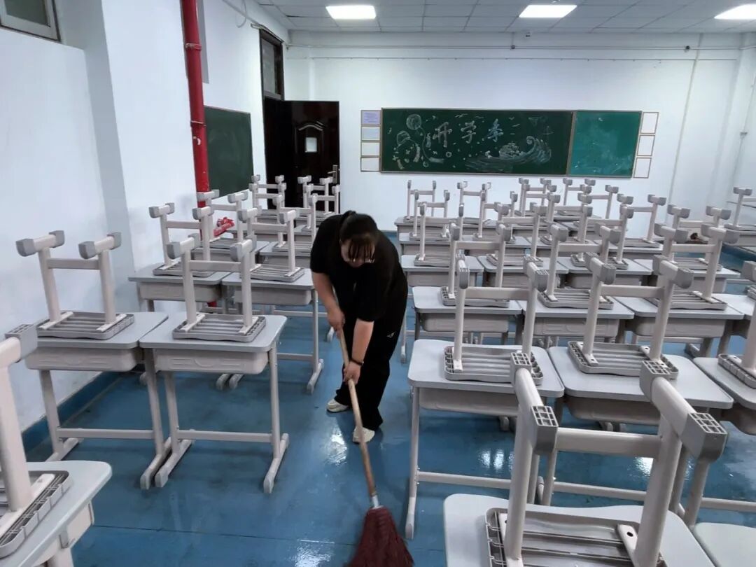 拂去尘埃,擦亮未来。老师们拿起扫把、拖布和抹布,对教室进行了“地毯式”的清洁打扫。从擦亮每一扇窗户,到清扫每一个角落;从摆齐每一张课桌,到调试每一套多媒体设备……老师们事无巨细,亲力亲为。汗水浸湿了衣衫,但笑容始终挂在脸上。因为他们知道,即将在这里奋笔疾书的,是国家的未来;即将在这里放飞梦想的,是每一个家庭的希望。