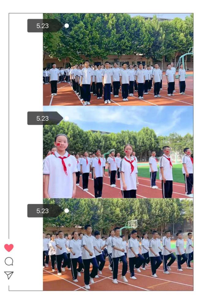 随着入场口令响起,激动人心的课间操比赛正式拉开序幕。同学们昂首挺胸、英姿勃发,喊着强劲有力的口号,踏着坚定矫健的步伐,宛如蓄势待发的雄鹰,彰显着初一学子团结奋进、力争上游的精神。