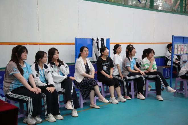 比赛现场精彩纷呈、高潮迭起。比赛中,队员们相互配合,奋勇拼搏。发球、传球、垫球、扣球,引人入胜,得分变化扣人心弦。高三师生沉浸在紧张热烈的比赛气氛中,一起呐喊加油,一起鼓掌欢呼。在场内场外的互动中,学子们的心情状态变得轻松欢快。比赛结束,强民主任代表学校给高三师生送上了真情的祝福,祝福学子们高考成功。
