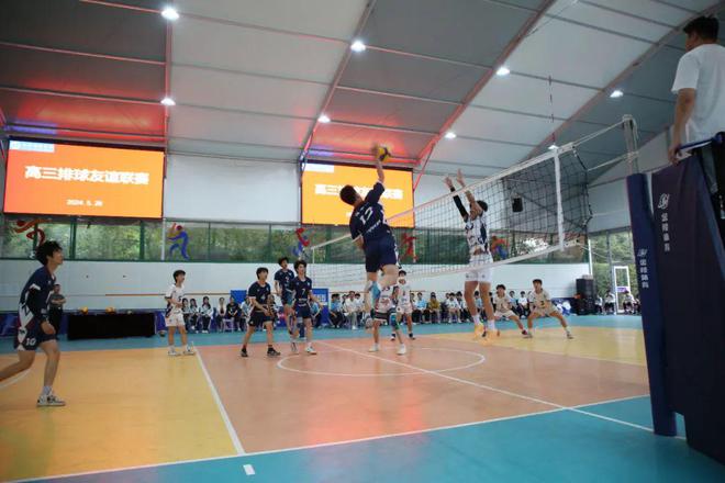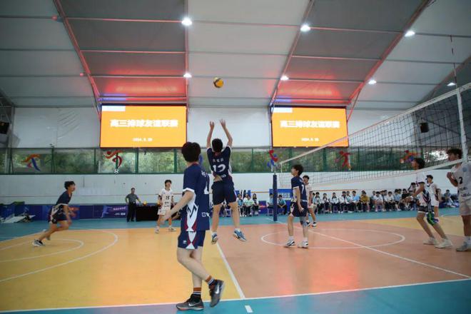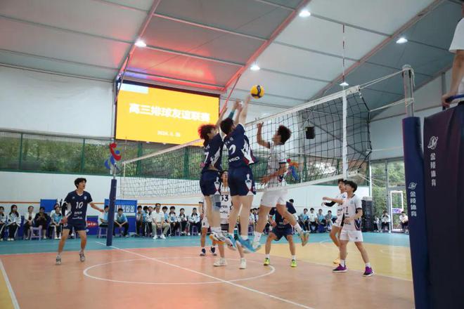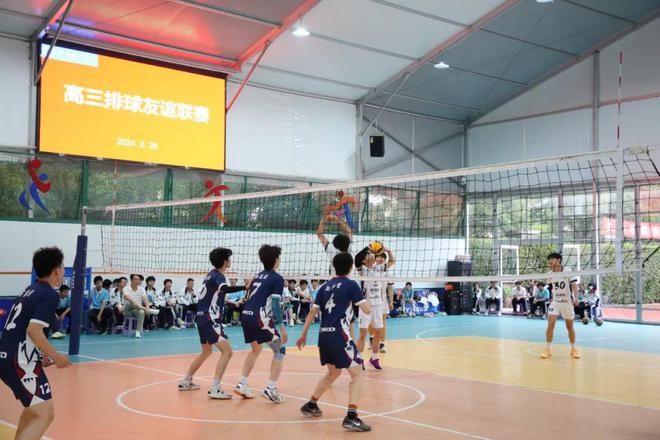 随着高考临近,锦园高三学子正在拼尽全力赢取高考。为了调整复习节奏,给高三学生减轻备考压力,引导学生从容不迫地走向高考考场,西安锦园中学于2024年5月28日下午安排举行了高三排球队与高一、高二排球队联谊赛,党支部书记兼校长樊锁强、副校长康艳丽、李斌侠、李育锋, 年级主管领导邢红波等与高三全体师生一起观看了这场比赛。