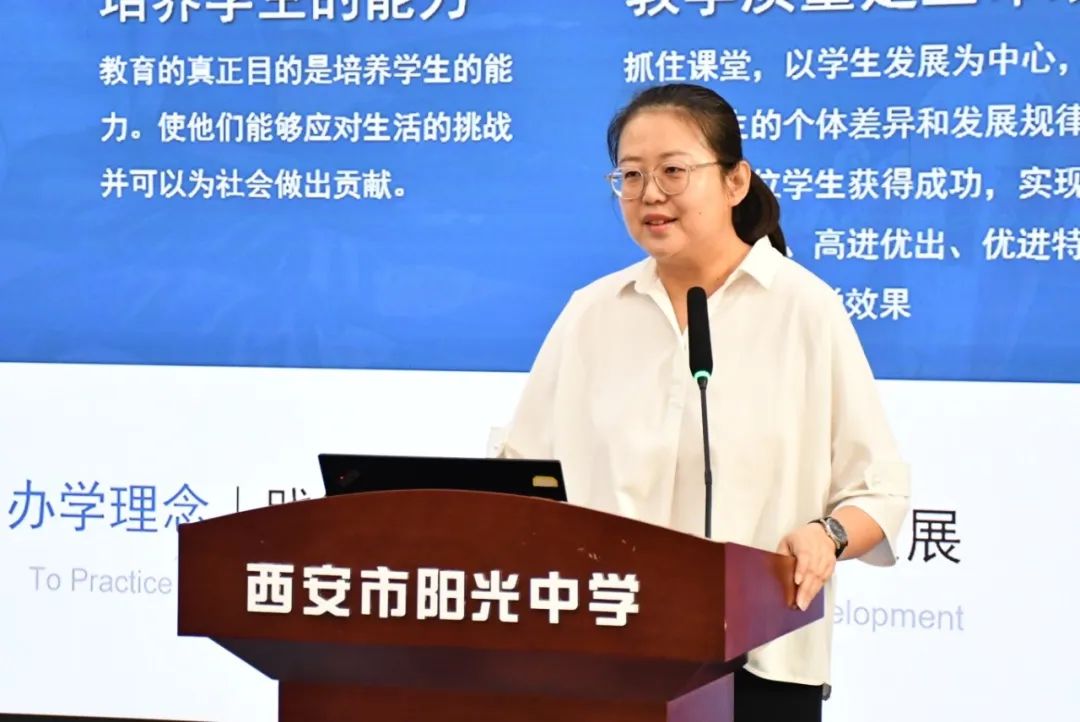 教务处王亚莉副主任简要介绍了学校的办学情况,重点介绍了阳光办学特色、办学理念以及多元化的课程体系和创新课堂教学模式。
