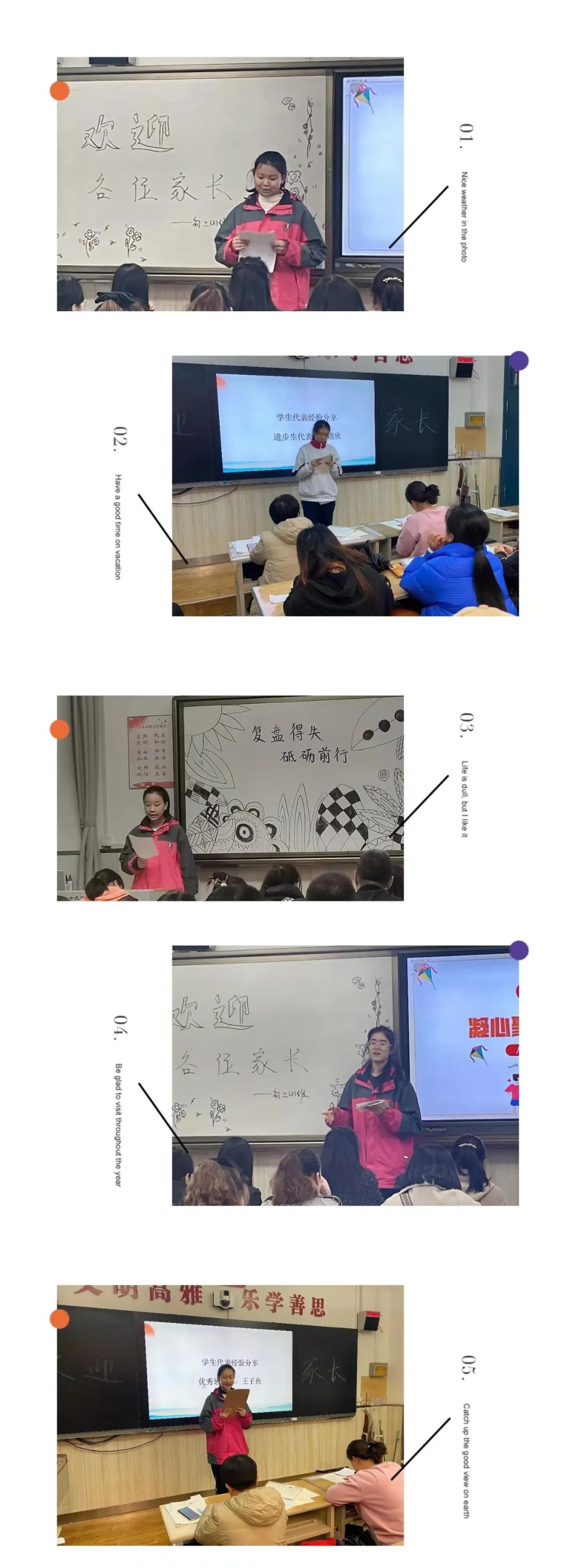 学生代表发言环节,家长们听到了来自孩子们内心深处的声音。 各班学生代表带着朝气与自信走上讲台,向家长们分享了自己的学习经验。他们谈到合理安排时间的重要性,同时还分享了如何克服学习中的困难,从失败中吸取教训,最后呼吁家长们能给予孩子更多的理解和支持,多和孩子们沟通,一起度过这个特殊的成长阶段。学生代表的发言,让家长们走进了孩子们的内心世界,更加明白孩子们的需求!
