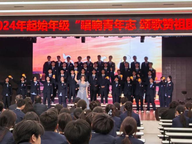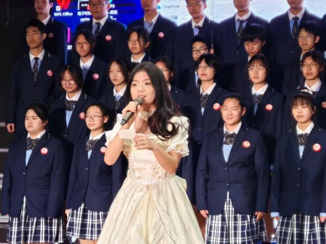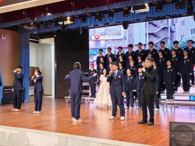 特别是必选曲目《新的世纪,新的诗篇》的演唱,更是将同学们对学校的热爱与感恩之情推向了高潮。在这悠扬的旋律中,我们感受到了同学们对学校的深情厚谊,也看到了他们对未来的美好憧憬。