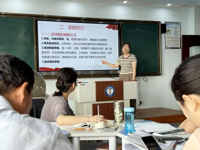 2024年9月26日,政治学科九年级王肃老师,作了“学生答题规范性和答题技巧训练”的主题研修讲座。王老师从选择题的答题规范与答题技巧、主观题的不同类型及对应的答题技巧这两大部分进行了分享。王老师分享的内容既是对自己日常研究中考试题的归纳总结,更是对毕业班学生多次模考情况梳理分析的理论提升。王老师最后强调,任何方法的运用前提都是学生扎实的基础知识。此次讲座为同组的教师们带来了有效的可借鉴的经验。