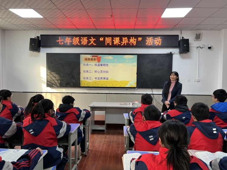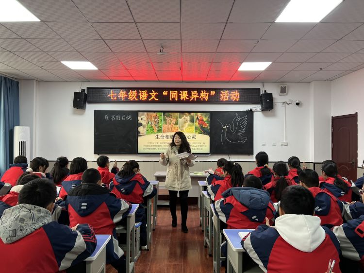 为贯彻落实《关于开展西安市、咸阳市中小学幼儿园优质学校教育联盟及结对帮扶等活动的通知》精神,进一步用好新教材,将新课标理念和新教材要求有效落实到课堂教学中,切实提高义务段“双新”的实施质量,2024年12月19日,西安市航天中学副校长付小静、校办副主任于川带领多娟、陶阳、张思萌、颜淑红四位老师赴礼泉县实验初中,开展了以“研读新教材,赋能新课堂”为主题的“同课异构”研修活动。