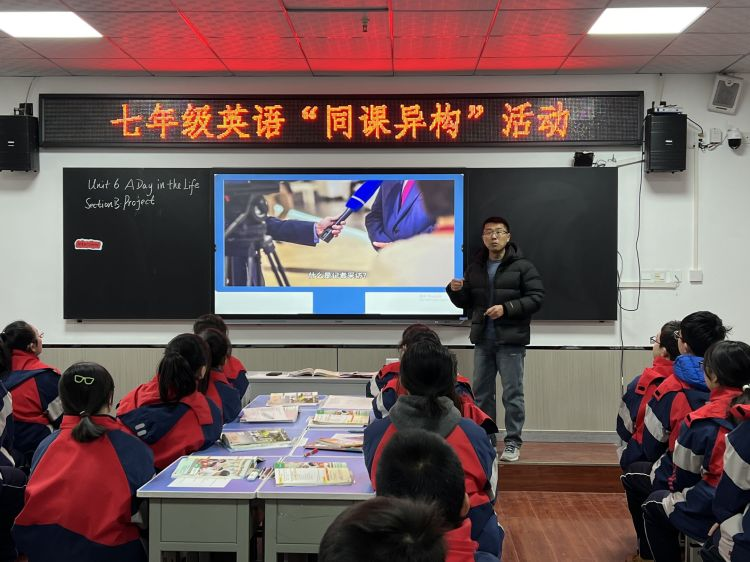 实验初中刘银老师执教的《Unit6 Project》一课,以流畅的口语,亲切的教态以及娴熟的课堂驾驭能力与学生展开互动交流,出色达成了教学目标,在之后的句型巩固环节和角色扮演活动中,也充分发挥了学生的学习的主体性,极大的调动了学生积极性与参与性。