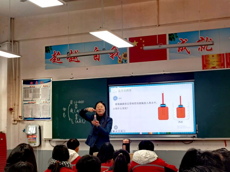 实验初中石璇老师执教的《物质的三态 温度的测量》课程设计精妙、语言亲切、课堂气氛活跃,充分展示了石老师教学的独特魅力,学生们畅游在轻松愉悦的课堂氛围中有问有答,有欢笑更收获满满。