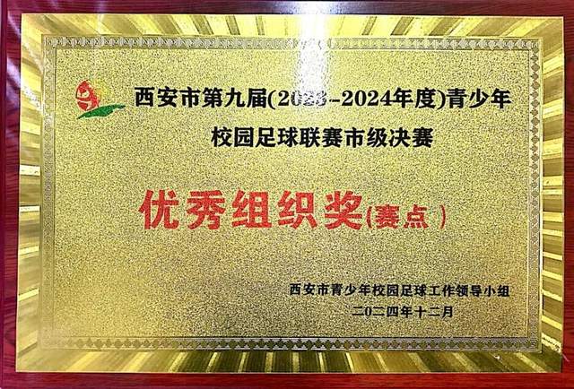 在西安市第九届2023—2024年度青少年校园足球联赛中,西安思源中学高度重视,全校上下齐心协力,以高度的责任感和使命感,精心筹备、周密组织,确保了赛事的顺利进行,经评定荣获优秀组织奖。