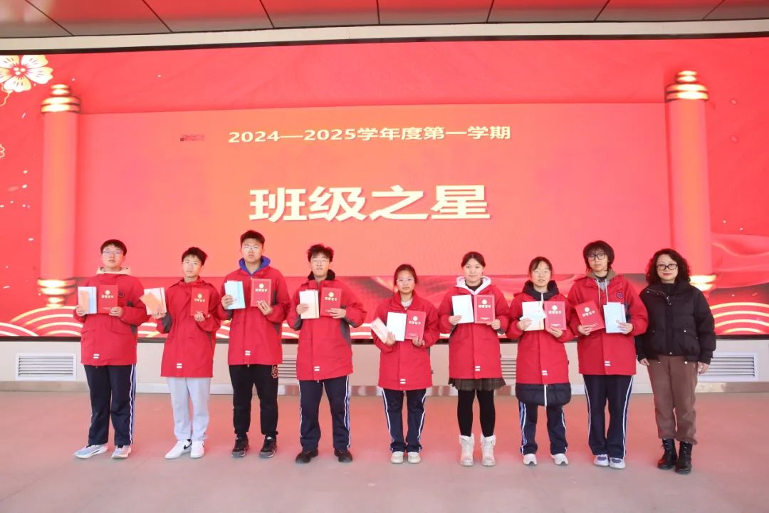 团委书记钟晴老师宣读了期末班级之星和城墙远足活动标兵学生名单。钟老师对获奖同学表示热烈祝贺,同时也鼓励未获奖的同学以他们为标杆,努力奋进,在新学期取得更大的进步。当同学们满怀喜悦地走上领奖台,接过奖状与奖品时,这不仅是对获奖同学的认可,更是激励全体同学未来不断拼搏的动力源泉。