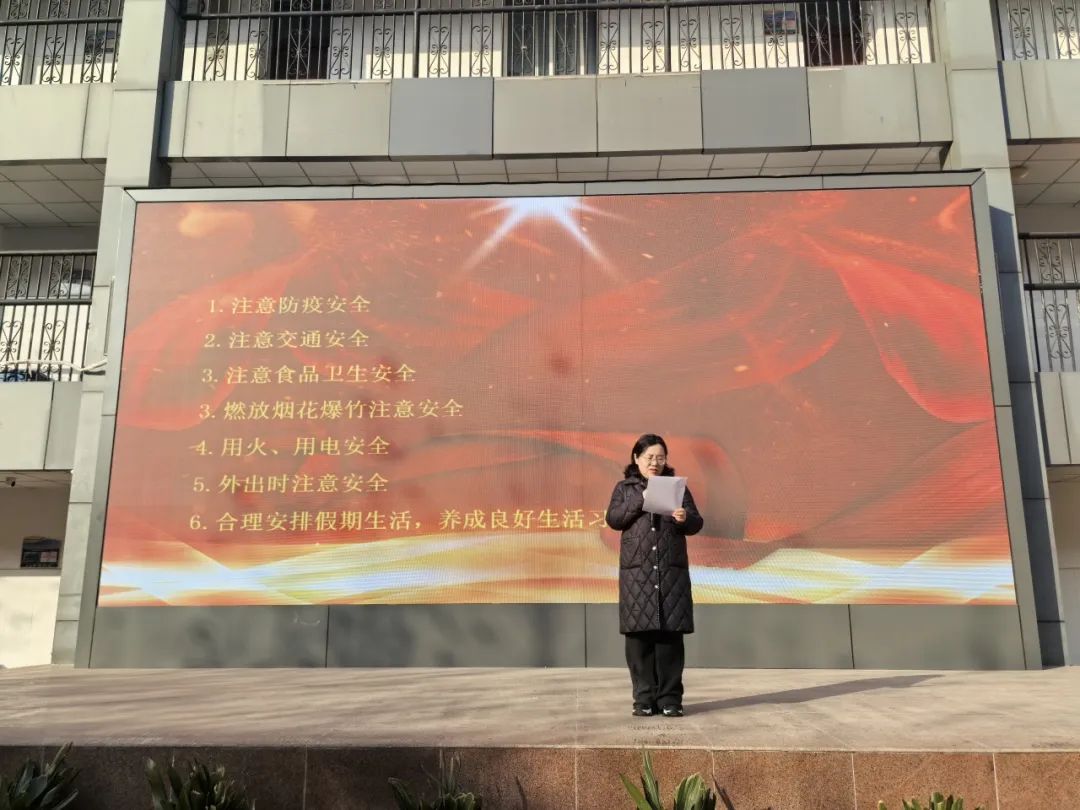 政教处张劲副主任进行了安全教育的重要讲话,他提醒全体师生,假期安全是学校工作的重中之重,每个人都应该时刻保持警惕,增强安全意识。详细讲解了假期安全注意事项,包括交通安全、食品安全、网络安全等方面,并鼓励大家积极学习安全知识,共同营造一个安全、和谐的假期生活。