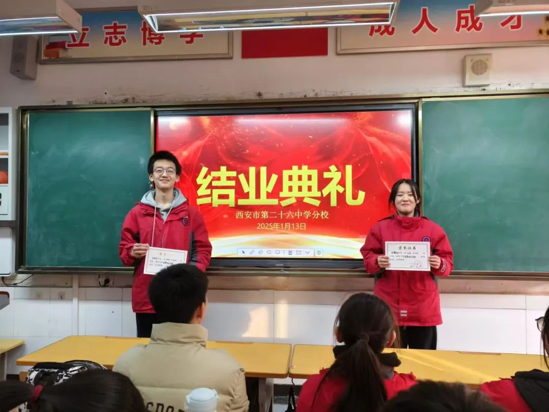 时光流转,岁月更迭。2024年,西安市第二十六中学教育集团全体师生携手并进,在努力中见证成长。2025年1月13日、19日,教育集团分校区、分年级举行了结业典礼,为一学期画上圆满的句号,也为新学期的征程吹响号角!