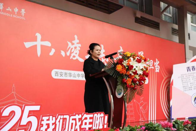 03、江胜校长的致辞饱含深情与厚望。他回顾了同学们在华山中学的成长历程,从懵懂少年到即将成人的青年才俊,每一步都凝聚着学校和老师的付出。江校长鼓励同学们在未来的日子里,心怀梦想,勇于担当,用知识和智慧书写属于自己的青春华章。愿同学们在人生之路上,勇攀高峰,以“千磨万击还坚劲,任尔东西南北风”的坚韧,书写青春的壮丽篇章。