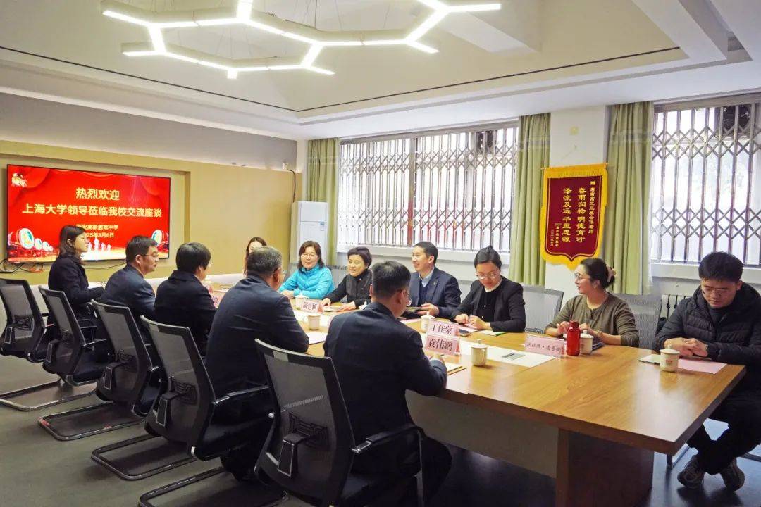 3月6日,上海大学文学院党委书记陆甦颖、经济学院党委书记尹应凯率交流组到西安高新唐南中学座谈交流。