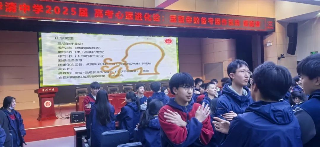 “心灯常伴春风暖,六月放歌华清园”。在距离高考仅剩80天的关键时刻,学校为高三学子开展了一场别开生面的心理赋能课——《高考心理进化论:重塑你的备考操作系统》。活动由高三年级组组织,学生发展指导中心张蕾老师主讲,旨在帮助高三学生在备考冲刺阶段通过情绪管理、认知重构和行动赋能三大模块,构建高效心理备考系统,提升备考效能。