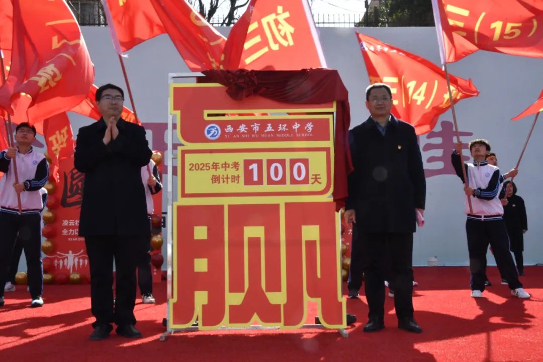 西安市五环中学校长张丽茜说,100天不是简单的倒计时,而是青春奋斗的激昂旋律。大家要满怀信心、坚持不懈的努力,同时要保持平和乐观的心态,就能收获属于自己的成功。希望大家充分利用好中考前成绩提升最快的这一百天,就一定会有所收获,创造奇迹。