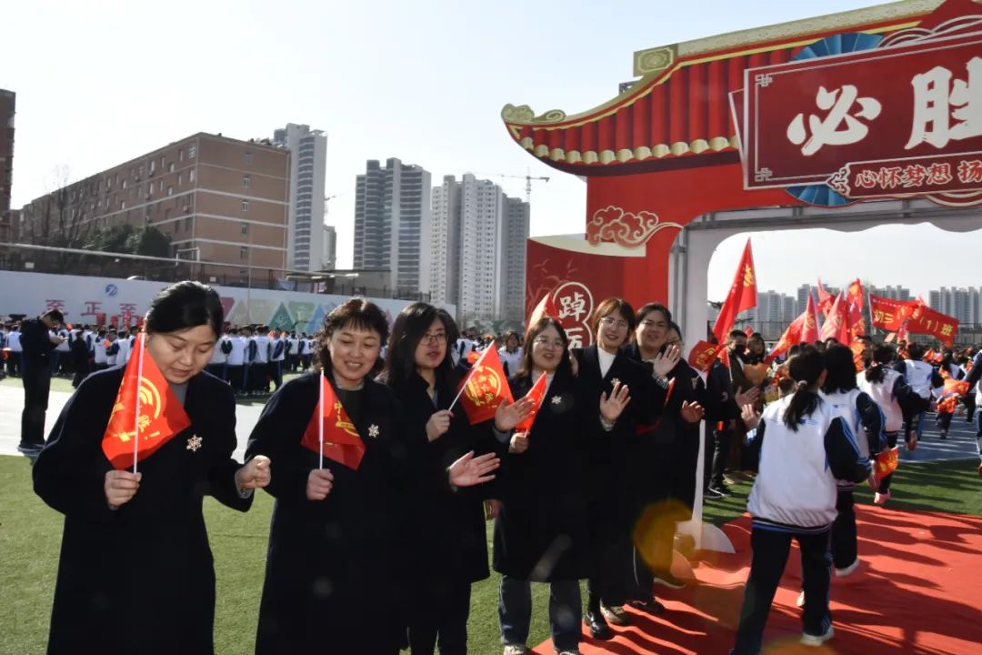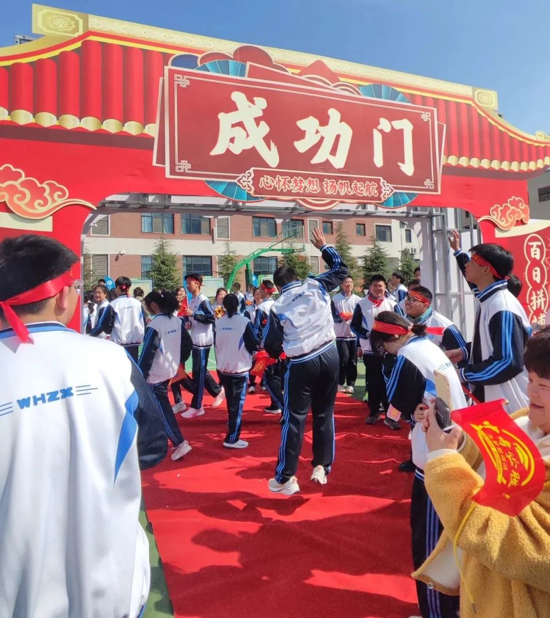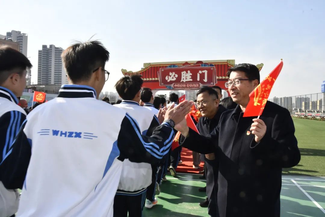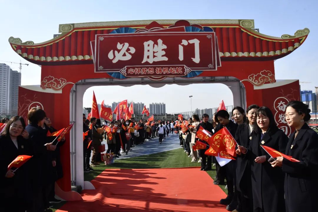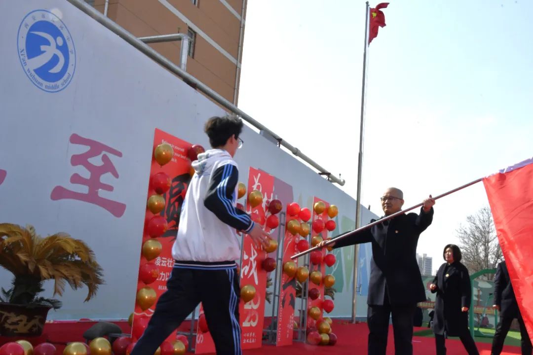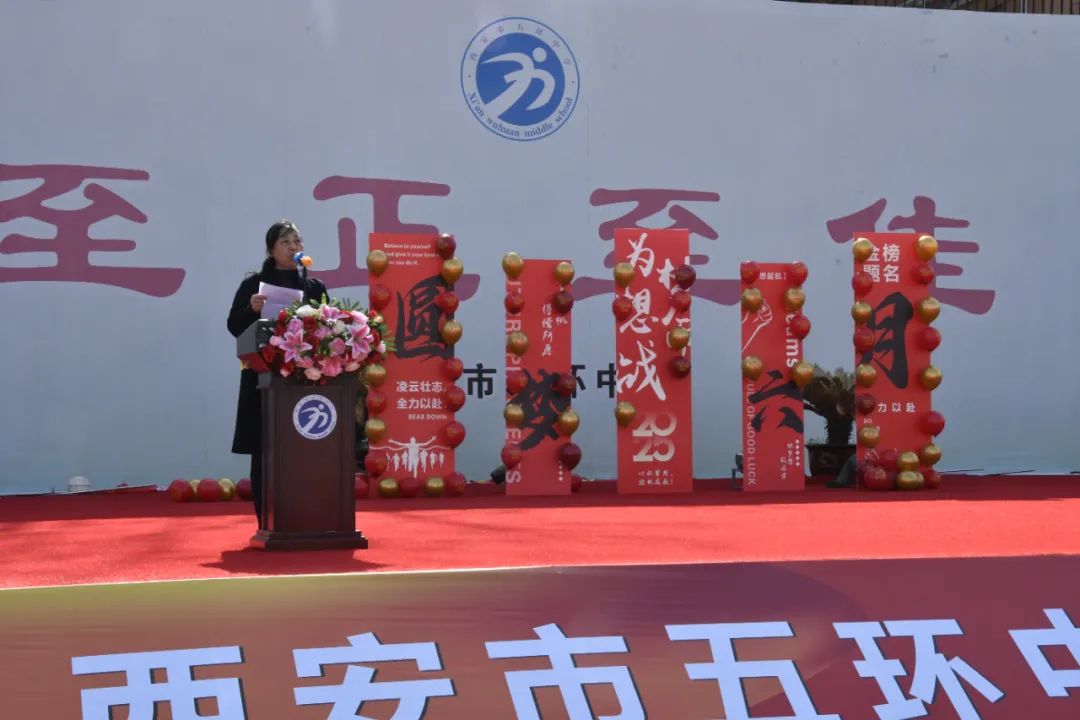 西安市五环中学校长张丽茜、副校长魏涛、副校长王有军及各处室负责人、九年级全体师生及家长代表穿过成功必胜的大门共赴这场青春的盛宴,为九年级学子点燃备考激情,擂响冲刺战鼓。