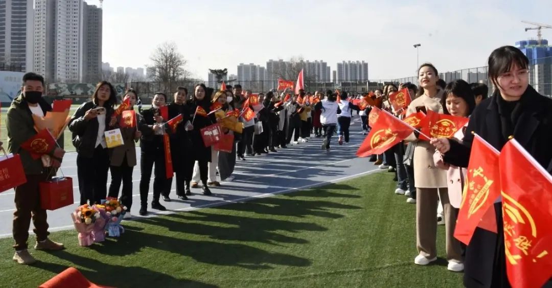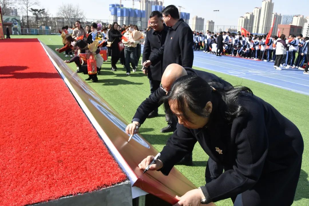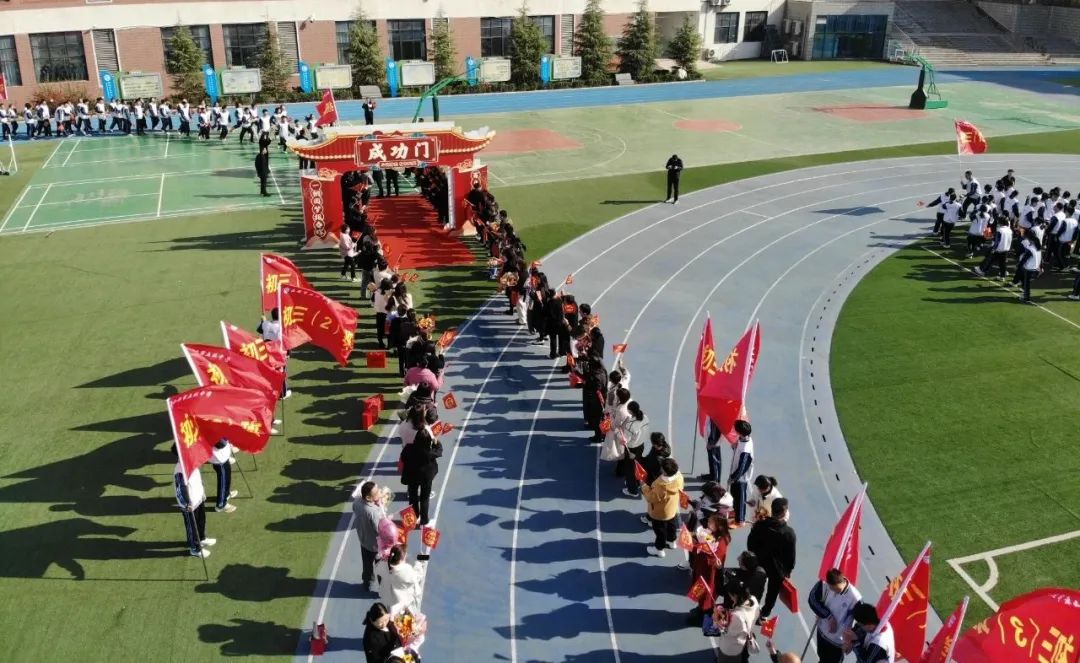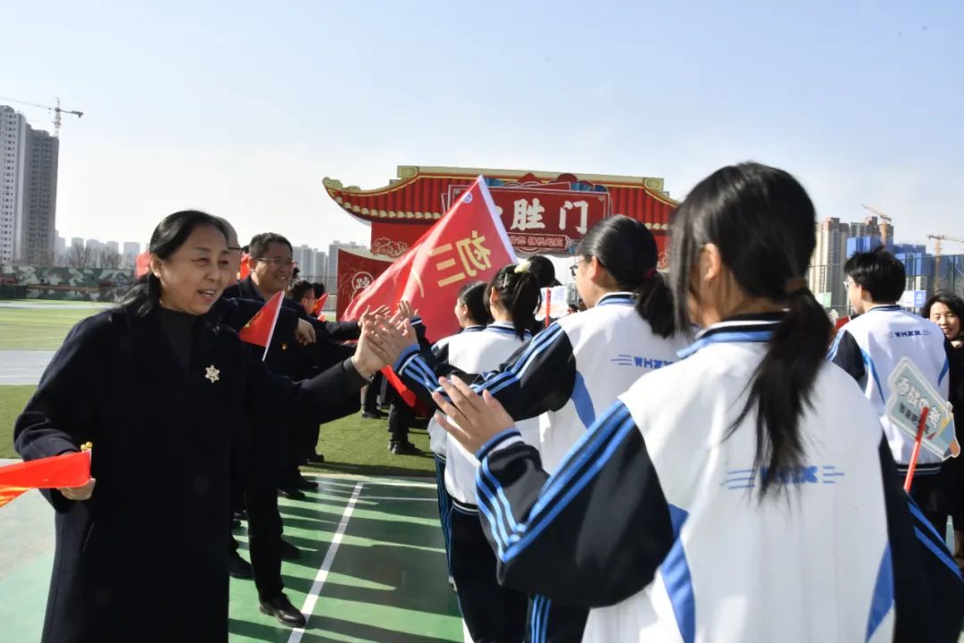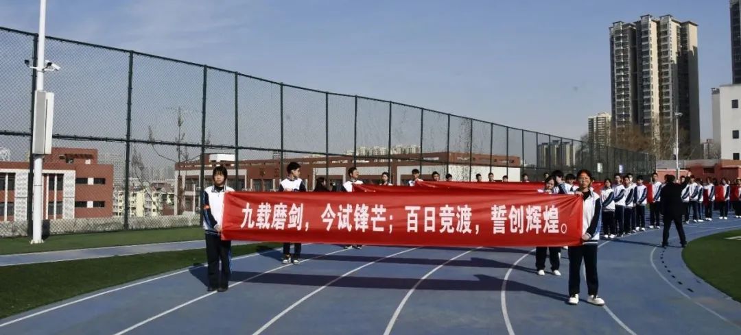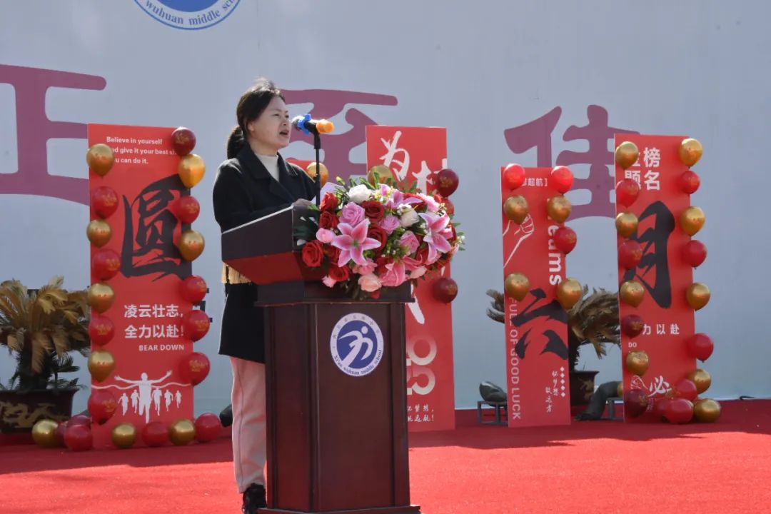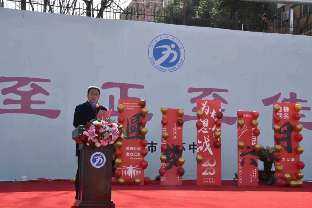 西安市五环中学校长张丽茜、副校长魏涛、副校长王有军及各处室负责人、九年级全体师生及家长代表穿过成功必胜的大门共赴这场青春的盛宴,为九年级学子点燃备考激情,擂响冲刺战鼓。