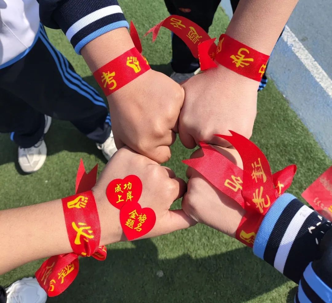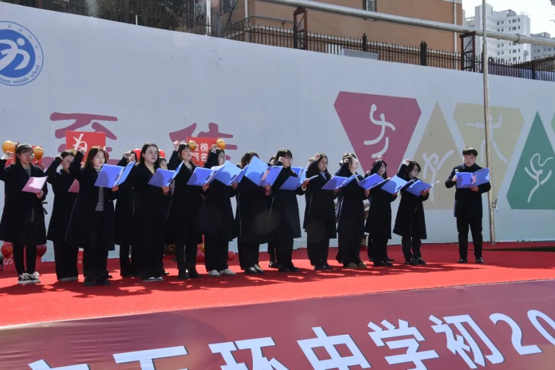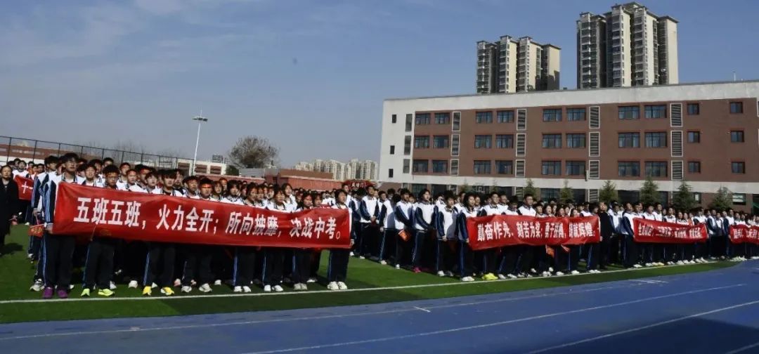 教师团队宣誓词:用挚爱关注每一位学子,用微笑面对每一个困难,用智慧迎接每一次挑战,用鼓励坚定每一个进步,用奉献影响每一个人生,用拼搏创造每一个幸福。请同学们放心,全体老师将和大家同舟共济,我们是你们的坚强后盾,让我们一同携手,为五环中学今年中考实现跨越式发展再添光彩、再创辉煌。