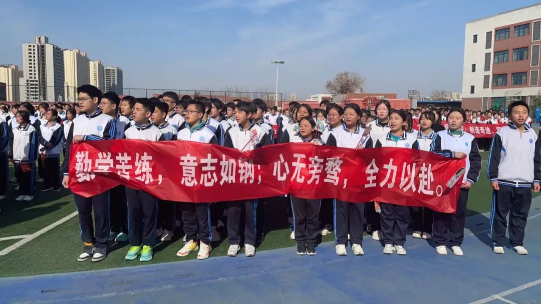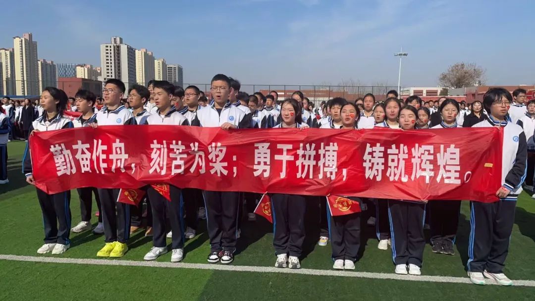 3月17日上午,西安市五环中学召开初2025届中考百日冲刺誓师大会。