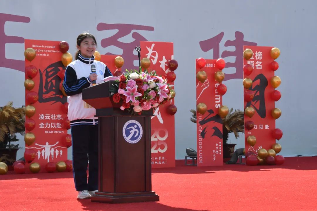 九年级二班权红彦同学鼓励全体初三小伙伴,这一百天是星火燎原的蓄积之时,点滴积累,终将燃亮苍穹;这一百天是雄鹰振翅的破云之战,搏击长空,必将迎来万里晴朗。百日的冲刺是逐梦青春的主场,经过这一百天的努力,每一位同学都将是熠熠生辉的主角。
