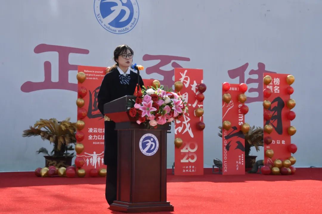 本次活动由西安市五环中学副校长刘江宁主持,刘校长说最后100天,是向梦想冲刺的倒计时,是化知识为力量的熔炉,是逆风翻盘的赛道,更是用汗水书写青春的战场!让我们以最饱满的热情、最坚定的信念,共同开启这场属于奋斗者的宣誓仪式!