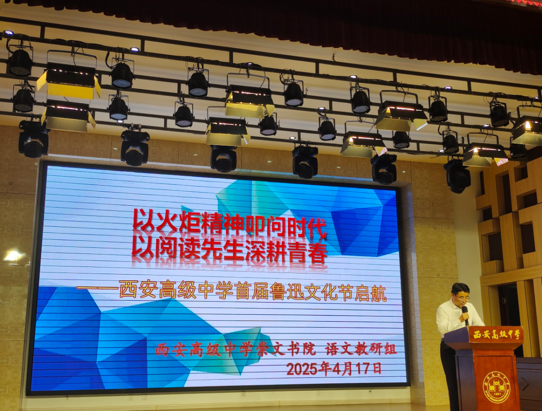 百年文脉续薪火,鲁迅精神启新章。2025年4月17日下午,鲁迅先生曾执教讲学的百年名校西安高级中学隆重举行了鲁迅文化节启动仪式。学校领导、教师代表及高一全体学生齐聚崇博厅,以书香致敬先贤,以阅读传承精神。