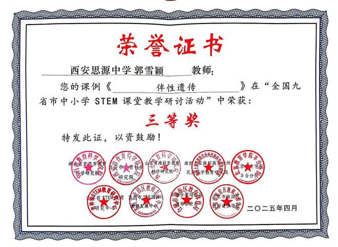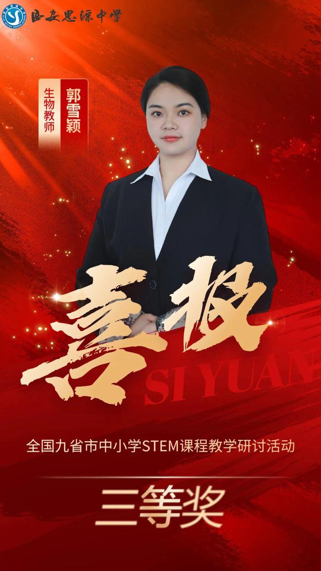 西安思源中学教师郭雪颖凭借扎实的专业素养和创新的教学实践,从众多优秀参赛者中脱颖而出,荣获三等奖。