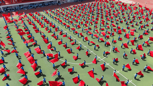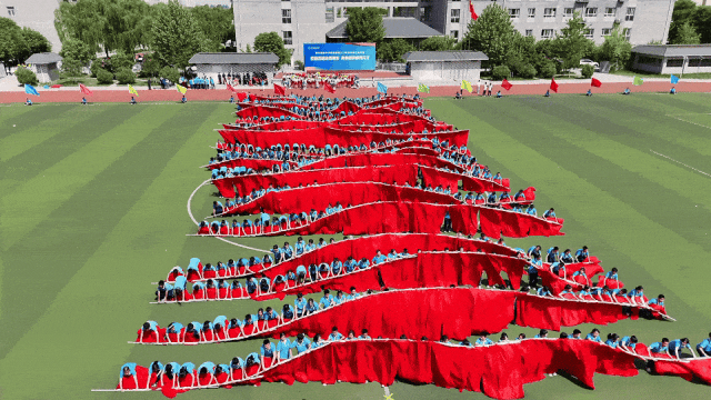 由西安高级中学初一、初二年级800余名少年表演的《旗开得胜》方阵气势恢宏,震撼全场!红旗翻滚、人海浪潮瞬间触动了所有人心中涌动的家国情怀和荡漾的激情。