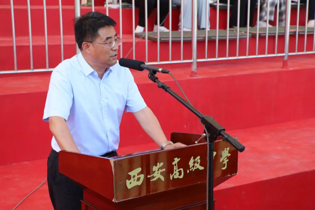 4月28日下午,西安高级中学教育集团“校园因运动而美好,青春因拼搏而闪光”2025年春季田径运动会隆重开幕。出席开幕式的领导、嘉宾有:西安高级中学教育集团总校长辛军锋,西安市第十一中学(西高常青校区)执行校长段文仓、副校长马建国,西安博爱学校执行校长王丽娟、副校长苏振中,西安大唐综合职业高中常务副校长赵林及退休教师代表。