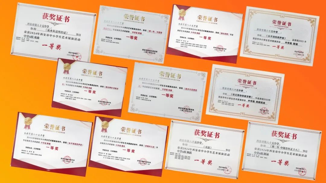 西安市第八十五中学现为陕西省艺术示范校,陕西省星光教育戏剧基地 ,音乐学院实习基地,师资强大、设备先进、管理到位、训练有方。学校现有音乐、美术专用教室(合唱、器乐、戏剧、舞蹈、书画、专业绘画、设计、艺术教学)12间,专职艺术教师6名,其中高级职称3名、其他3名年轻教师均为研究生学历,省级教学能手2名,市级教学能手2名,教学新秀1名,雁塔区新课程指导教师2名;1名西安市卓越型教师;1名陕西省优秀教学能手工作站站长,西安市骨干型教师,西安市学科带头人培养对象。
