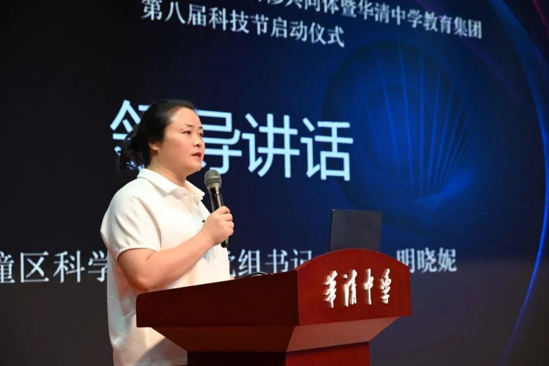 华清中学党委副书记张哲同志在致辞时强调:作为高中生,我们应以青春之力响应国家战略,中国式现代化的宏伟蓝图,需要青年一代的接续奋斗。让我们携手擎起振兴中华的接力棒,在科技创新的征程中挺膺担当,用青春热血书写中国科创历史的壮丽篇章!