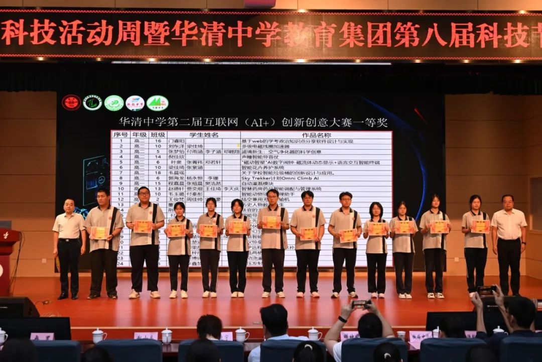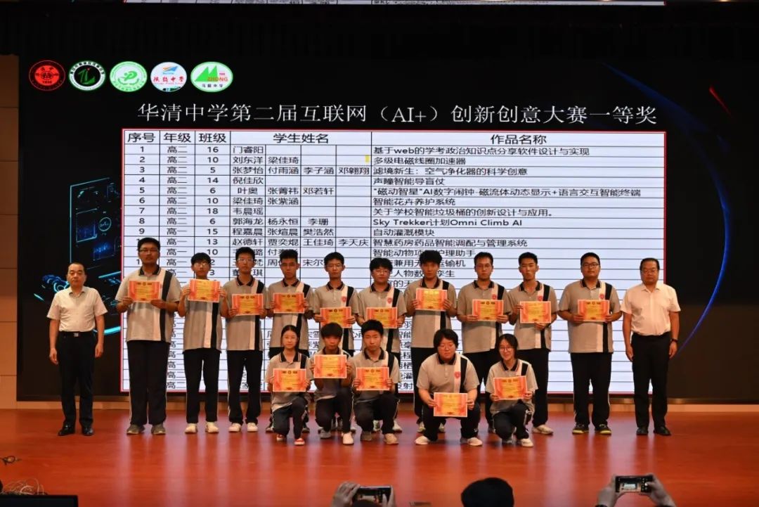 区教育局党委委员赵小县同志,华清中学党委副书记张哲同志为创新创意大赛奖获奖学生颁奖。