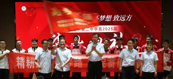 高考的接力棒薪火相传,奋斗的精神生生不息。校长将凝聚着信念与力量的战旗传递给高2026届师生。与此同时,高2025届学生代表将承载着宝贵经验与美好祝愿的横幅标语赠予准高三学子。毕业生代表与准高三同学先后发言,他们的话语中,既有毕业生对过往的深情回望、对未来的豪情壮志,也有接棒奋斗的坚定决心,现场气氛热烈,掌声雷动。