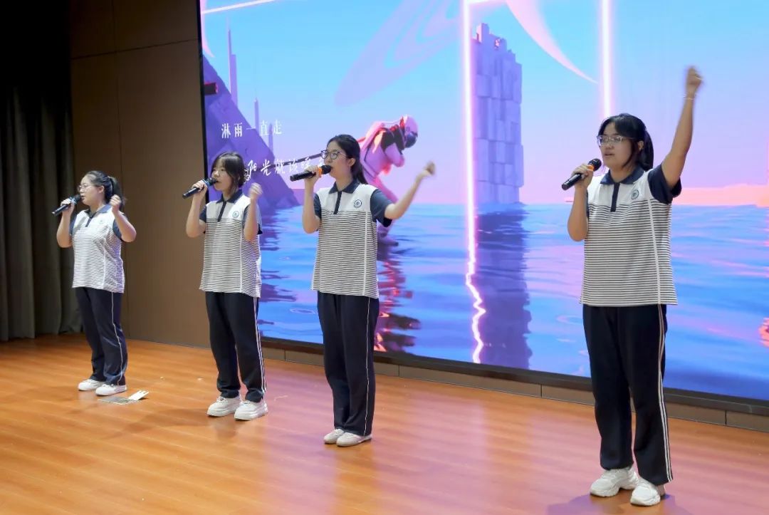 在庄重的仪式之余,同学们精心筹备的文艺节目为典礼增添了别样的感动与精彩。灵动曼妙的舞姿、饱满的情感,诠释着青春的活力与家国情怀;铿锵有力的歌声、气势磅礴的旋律,恰似学子无畏追梦、一往无前的真实写照;宛转悠扬的曲调、行云流水的演奏,诉说着少年对未来的憧憬与热爱。