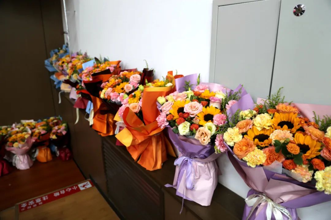 “三尺讲台育桃李,一支粉笔写春秋”,教师们如明亮的灯塔,照亮学子前行之路。 “赠送锦旗与献花” 环节中,家长代表们手捧锦旗,将饱含着对教师无私奉献的感恩与敬意郑重表达。高三学子们手持鲜花,眼含热泪,将最真挚的感谢献给全体高三教师。那一刻,感恩与感动交织,温情在校园里流淌。