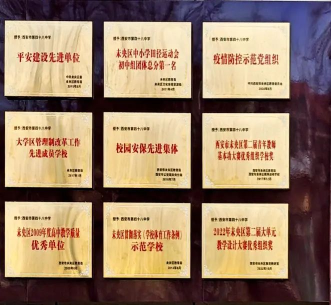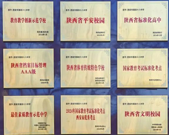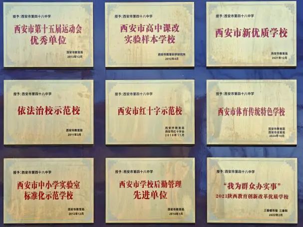 在操场荣誉墙和校门外荣誉墙前,您将见证西安市第四十八中学近年来取得的各项荣誉和成就。