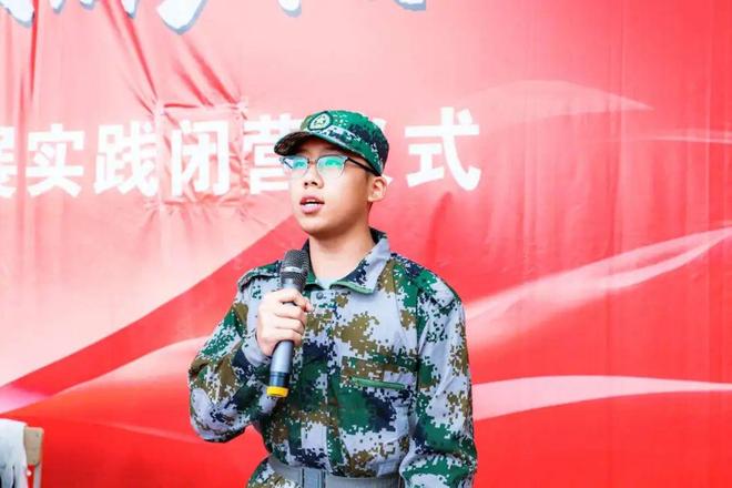 学生代表郭星辰同学回忆了本次军事素养拓展实践的难忘瞬间,并表示军事素养拓展实践即将结束,但它所赋予的精神财富将终生相伴。未来的高中三年,无论遇到什么困难,只要葆有军训淬炼出的意志和担当,不忘初心、携手同行,就一定能够勇往直前、不负韶华。