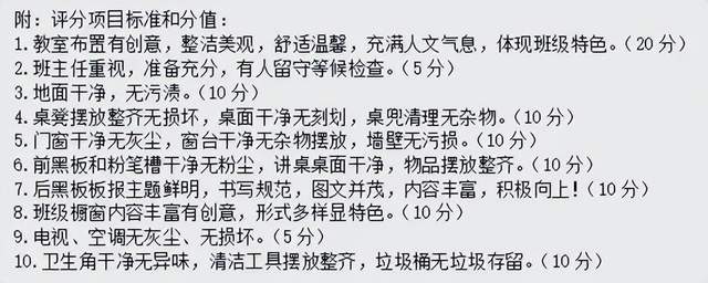 为了加强校园文化建设,营造优雅和谐、健康向上、生动活泼的班级文化氛围,发挥环境育人的重要作用,9月5日,西安市第六中学教育集团组织开展了“洁美教室”评比活动。
