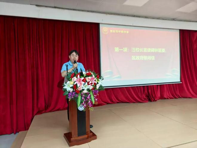 汪勇校长宣读了中共碑林区委、区政府致广大教师和教育工作者的慰问信。字里行间,饱含着上级领导对广大教师的深切关怀与崇高敬意,让老师们深切体会到身为教育工作者的光荣与肩负的责任。