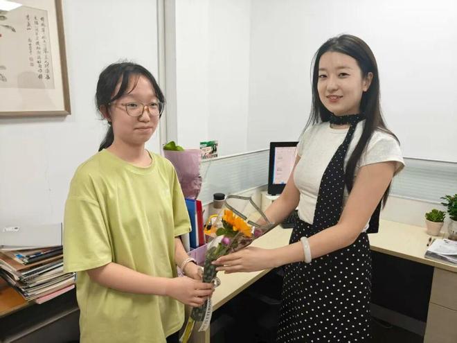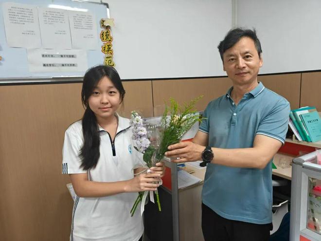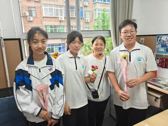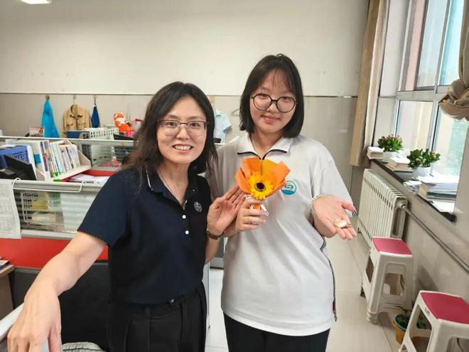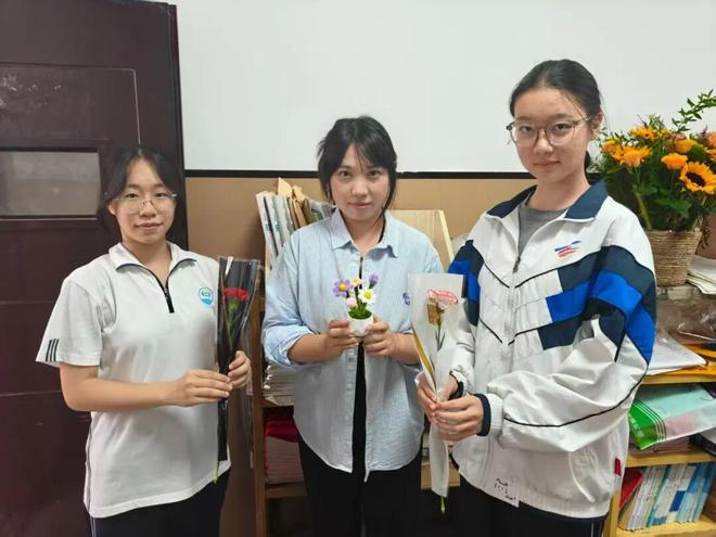 办公室里,同学们以笔言心、以字传情,将自己精心制作的贺卡、手工花送给老师,表达对老师最诚挚的祝福。