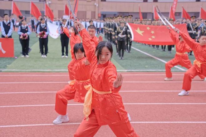 最后,全体师生齐唱《我和我的祖国》,嘹亮歌声与飞扬红旗交织,为这场精彩的开幕式画上完美句点,也正式拉开本届运动会的精彩序幕!