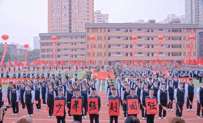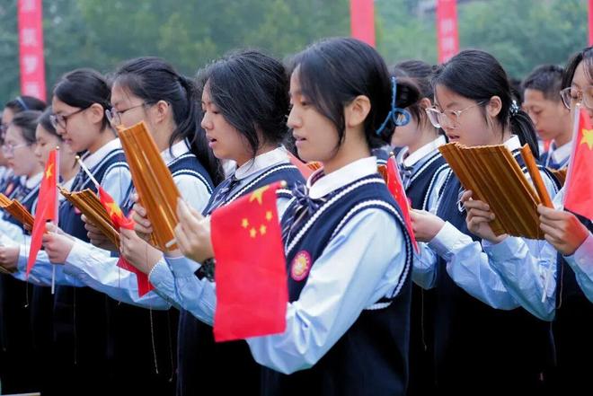 高二年级与二分校初一年级师生联袂诵读《三中赋》,回望学校 112 年悠久的办学历程和荣光。
