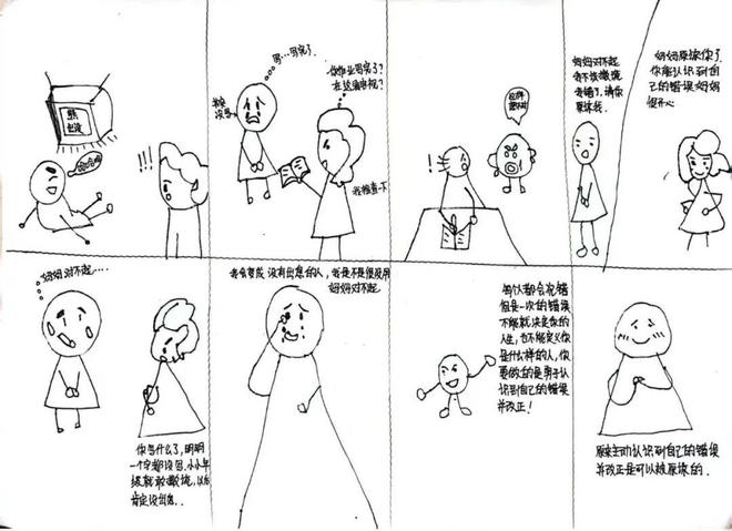 一年级的小朋友们用漫画描绘诚实,有的借助“一言九鼎”等成语,有的则通过亲身经历,表达诚实的重要性。